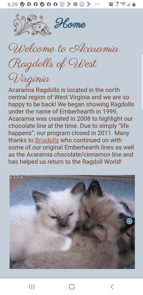 In 2008 Emberhearth Cattery became Acaramia Cattery. Strangely suspicious, they specialized in rare chocolate ragdolls, the chocolate ragdoll cats often resembled the Chantilly in appearance. They continued breeding the presumed “Ragdolls” (part Chantillys?) until 2011. Their chocolate and cinnamon breeding lines were then past down to a Cattery named Briadolls in New Jersey.