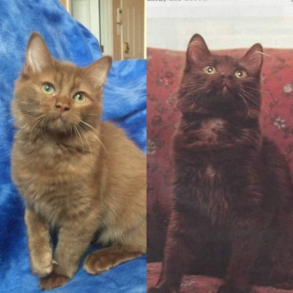 The cat on the left is a Ragdoll from a cattery called Briadolls, the cat on the right is one of Tracy Oraas’s Chantilly/Tiffanys. Briaodolls Cattery carried on Emberhearth’s (suspicious) chocolate/cinnamon breeding lines (part Chantillys?). The Chantilly extinction claim is untruthful. The Chantilly is alive and well, and there is high probability they are being used for Ragdoll outcross breeding stock.